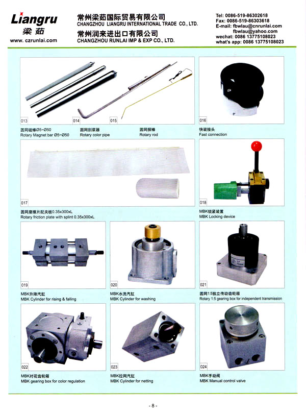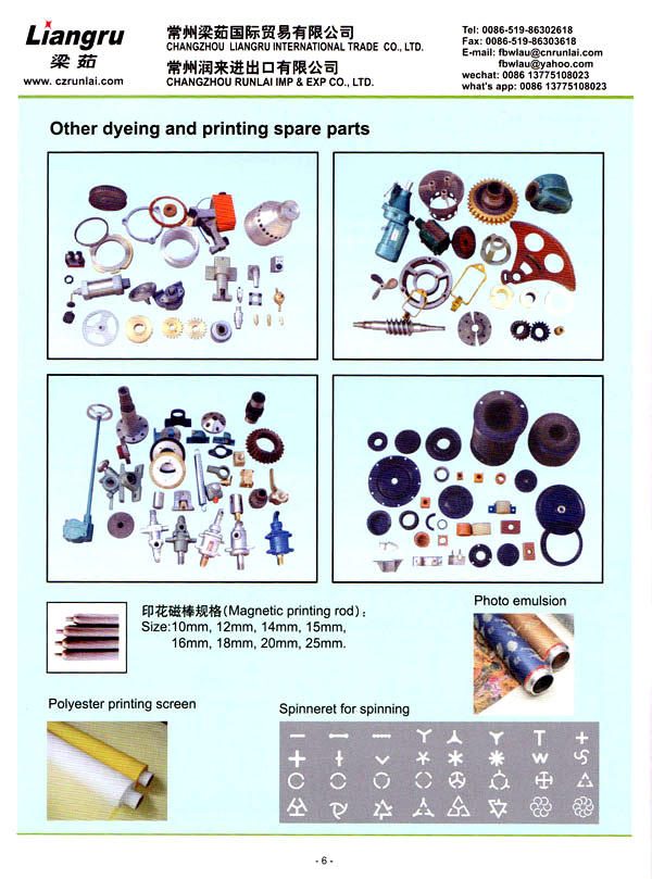 常州梁茹國際貿易有限公司是國內外雙用鋏,T型刮漿片,感光膠, 640軸承,剝邊器,阿托斯滑塊,印花用漿泵,針板座, 印花用圓網,印花圓筒網,華磁棒,針板,毛刷輪,定型機鏈條, 切布刀片的主要供應商 。我們公司位于常州市,臨近上海,交通十分便利。 我們注重產品質量,價格優(yōu)惠,這是我們成功的原因所在,我司跟配套廠家緊密合作,不斷推出新產品,年銷售額逐年增加。我們的產品涉及化工、機械、紡織印染機械配件。我們熱忱歡迎國內外客戶與我司洽談業(yè)務,相信在我們的熱情服務之下能合作成功!