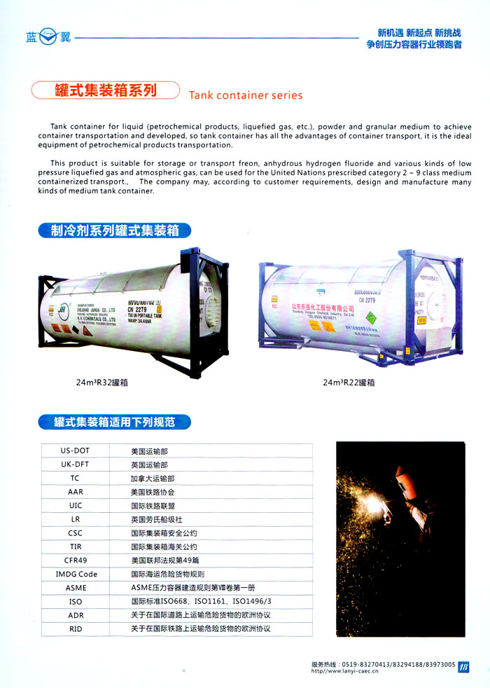 公司DOT4BW100L鋼質(zhì)焊接氣瓶通過(guò)美國(guó)運(yùn)輸部產(chǎn)品認(rèn)證;20英尺1CC罐式集裝箱通過(guò)英國(guó)勞氏船級(jí)社和歐盟移動(dòng)壓力設(shè)備指令(TPED)認(rèn)證;壓力容器通過(guò)美國(guó)機(jī)械工程師學(xué)會(huì)(ASME)鍋爐及壓力容器規(guī)范認(rèn)證。壓力容器制造資格、許可制造產(chǎn)品級(jí)別位列同行業(yè)前茅,曾連續(xù)兩次獲制造資格免審。能設(shè)計(jì)開(kāi)發(fā)5m³-50m³低溫容器(-196℃)、液氯、液氨、液化石油氣等介質(zhì)的大型儲(chǔ)罐、各類(lèi)換熱器、50m³-160m³碳鋼-不銹鋼復(fù)合材料PVC聚合槽、VDC貯槽等大型特種設(shè)備、核反應(yīng)堆壓力容器金屬保溫層、控制棒驅(qū)動(dòng)機(jī)構(gòu)復(fù)驗(yàn)臺(tái)架等。建有現(xiàn)代化的液化天然氣(LNG)車(chē)用氣瓶生產(chǎn)線,擁有華東地區(qū)比較先進(jìn)、環(huán)保型的現(xiàn)代化大型回火爐熱處理設(shè)備。