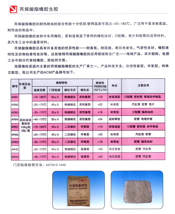 公司生產(chǎn)的聚丙烯酸酯系列橡膠,以及丙烯酸酯橡膠混煉膠、乙烯丙烯酸酯橡膠混煉膠、氟橡膠膠混煉膠、氟硅橡膠混煉膠、氫化丁腈混煉膠等。質(zhì)優(yōu)物美,深得國(guó)內(nèi)外客商的青睞。