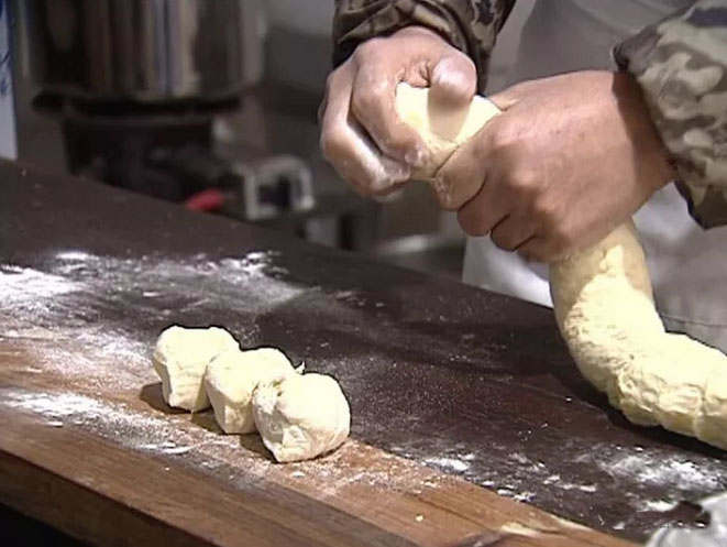 武進(jìn)區(qū)前黃韓記點(diǎn)心坊從事各式點(diǎn)心制作已有兩代人,特色是雞蛋油條,特色大麻糕,小籠包及各種饅頭,大麻糕又酥又松。 天光大亮,前黃寨橋農(nóng)貿(mào)市場(chǎng)已是人來人往,熱鬧非凡。 靠近市場(chǎng)的一排店面房,聞著隱約飄出的芝麻香,記者找到了坐落其中的韓記點(diǎn)心坊。 油條在鍋內(nèi)滋滋翻滾、各種口味的麻糕在柜臺(tái)里依次擺開、包子隱藏在散著熱氣的蒸鍋內(nèi)……沉寂一個(gè)晚上的胃,頓時(shí)有些不安于寂寞。 韓記大油條: 飯店、麻辣燙店點(diǎn)名要它 60斤面粉,大約400根油條,這是韓記點(diǎn)心坊每天要賣掉的量。 將預(yù)先調(diào)制好的面團(tuán)鋪開,切成均勻的長(zhǎng)條,每?jī)蓷l上下疊好,用小竹板中間一壓、拎起兩頭一拉,放進(jìn)油鍋,滿鍋的油就開始沸騰起來。 老板韓效慶做起油條來一氣呵成,他的油條會(huì)用到低筋、中筋、高筋三種面粉,根據(jù)季節(jié)不同,配比也不同,再加雞蛋、泡打粉發(fā)面,炸好后吃起來特別香脆。 “附近市場(chǎng)飯店、麻辣燙店用的油條都是我這里的,有些食客點(diǎn)名要吃我們店里的油條!表n效慶自豪地介紹說,他做點(diǎn)心的手藝是從父親那里學(xué)來的。在父親手下學(xué)了7年后,他先后前往常州迎桂饅頭店、興隆園美食城、常州麻糕店等地打工,最終形成了自己的點(diǎn)心配方。 兩年前,韓效慶回到家鄉(xiāng),在農(nóng)貿(mào)市場(chǎng)租店面開了點(diǎn)心坊,這里也成了市場(chǎng)上最熱鬧的一家店鋪。 韓記大麻糕: 冷著吃也很酥脆 向外地人介紹常州地道美食,大麻糕是絕對(duì)繞不過的。一家好的麻糕店,一定要具備以下特點(diǎn):清晨排長(zhǎng)隊(duì);麻糕被帶往外地甚至海外;死忠粉甚多。而這些特點(diǎn),韓記大麻糕都具備。 要問韓記大麻糕與其他麻糕有什么不同,韓效慶還真說出了好幾個(gè)區(qū)別。例如,很多傳統(tǒng)麻糕使用烤桶,烤桶內(nèi)用的是煤,而韓記用的是大烤箱。再比如,一些外地朋友吃到的麻糕“干乎乎、木噱噱”,“這是因?yàn)樗麄冑I到的麻糕采取了普通的發(fā)面方式,再放進(jìn)爐子或烤箱一烤,水分蒸發(fā)了,肯定硬。”韓效慶經(jīng)過多次嘗試,用麥芽糖發(fā)面,麥芽糖具有保濕性,使水分不易蒸發(fā),對(duì)麻糕的保濕與品質(zhì)的維持有較好的效果,這樣做出來的麻糕即便冷了也依舊酥脆。甜味的韓記大麻糕也不使用白糖,而是采用果糖,麻糕冷后也不會(huì)結(jié)塊,保持了更好的口感。 在韓記,大麻糕做好后,表面的芝麻也不是撒上去的,而是印上去的。芝麻經(jīng)烘烤之后顆粒飽滿,呈象牙色,使大麻糕的香、脆得到充分體現(xiàn)。 韓記大肉包:糅合豆瓣醬的創(chuàng)新美味 下粉、摻水、攪拌、揉搓……棉絮狀的面粉像被施了魔法,不一會(huì)兒就變成了一個(gè)白凈光滑的面團(tuán)。 韓效慶將面團(tuán)放置在一旁,待它慢慢餳著,轉(zhuǎn)手拿出已經(jīng)拌好的餡料,“你能聞出什么味道嗎?”在確定記者猜不出后,他開始娓娓道來——豬肉都是后腿肉,餡料里不放鹽、味精,全靠豆瓣醬和糟方提味。 待面團(tuán)和餡料都準(zhǔn)備就位,只見韓效慶一手拿著切好的面團(tuán),一手握著搟面棍,飛速地邊搟邊旋轉(zhuǎn),一張薄厚適中的面皮眨眼就制作完成了。他將搟好的面皮放于左手手心,舀起一勺肉餡置于面皮中央,熟練地將面皮捏出十多道褶皺,輕輕一扭,一個(gè)肉包躍然眼前。 待包子蒸好,食客們紛紛起身,等著帶走屬于自己的那一份美味。記者也忍不住拿起一個(gè),咬上一口,咸鮮的美味、撲鼻的豆瓣香,那種特別的味道只有品嘗過的人才能體會(huì)。 食客點(diǎn)評(píng):食客孫桂洪:我是寨橋人,住在湖塘好幾年了,可每隔一段時(shí)間,我就特別想那酥脆的油條和熱乎的肉包。驅(qū)車前往韓記點(diǎn)心坊,點(diǎn)上一碗豆腐湯,要兩樣點(diǎn)心,趁熱一股腦兒全都塞進(jìn)胃里,每次吃完都特別滿足。