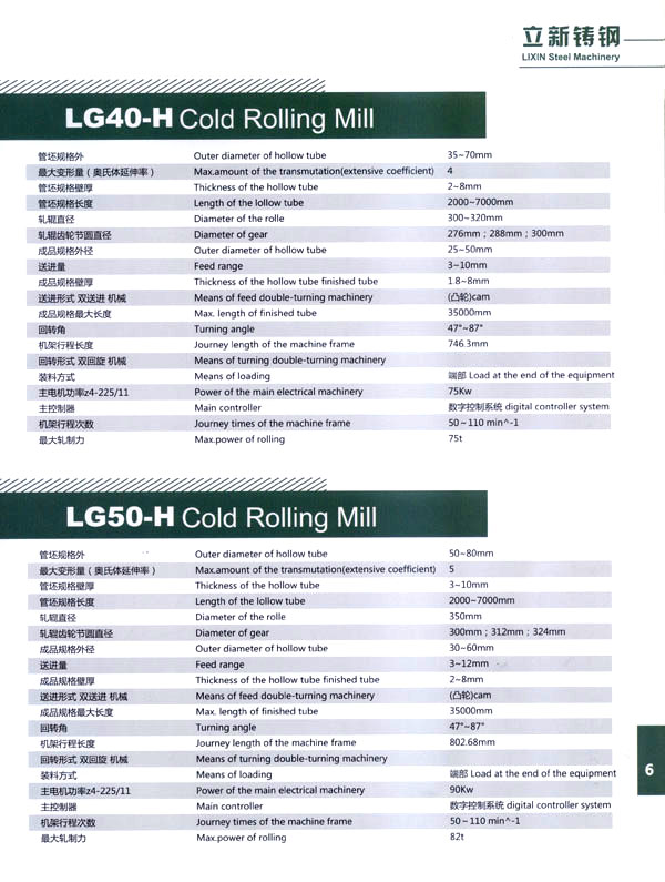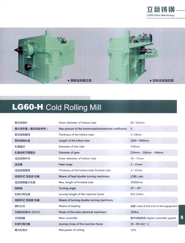 常州立新特種耐熱鑄鋼有限公司,地處江南水鄉(xiāng)古鎮(zhèn)一武進橫林,是全國著名的強化地板之鄉(xiāng)。 本廠歷史悠久,技術力量雄厚,制造設備齊全。擁有先進的鑄造生產(chǎn)線,1噸中頻感應加熱熔煉電爐;先進的化學分析設備和大型機床加工、埋弧堆焊機、電熱回火爐、拋丸機等。 公司依靠科學進步,結(jié)合國外先進技術和國內(nèi)需求,自行設計制造LGl5一H、LG20一H、LG30一H、LG40一H、LG50一H、LG60一H、LGl20一H型系列長行程環(huán)孔冷軋管機。對不銹鋼、碳鋼和有色金屬大減徑、大減壁軋制。亦可生產(chǎn)耐熱鑄鋼件、普通鑄鋼件、大型離心澆鑄件、大型軋輥堆焊等,同時可以為客戶加工生產(chǎn)大中型硬齒面齒輪及各類機械零部件備件。 公司另有焊管生產(chǎn)線1條,可生產(chǎn)直徑8—32mm的精密焊管、矩形管、冷拔管。應用于各種燈具生產(chǎn)及其它工業(yè)生產(chǎn)。 本公司注重產(chǎn)品質(zhì)量,在同行業(yè)中率先通過了IS09000質(zhì)量體系認證,并以優(yōu)良的服務取信于客戶。我們的宗旨是:質(zhì)量第一、信譽第一、價格合理、交貨及時,竭誠歡迎國內(nèi)外客戶來人來函聯(lián)系洽談業(yè)務、光臨指導!