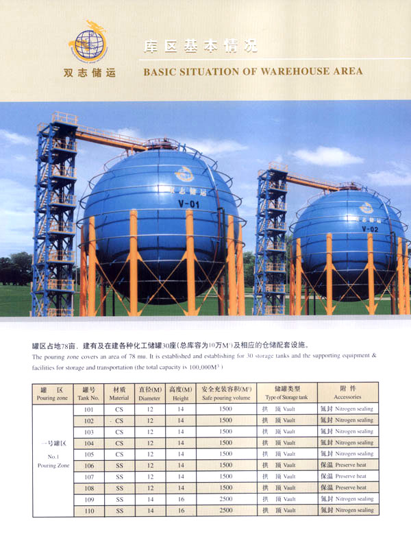 常州市雙志石油化工儲運(yùn)有限公司,位于國家一類對外開放口岸常州石化港區(qū),是一家專業(yè)石油化工產(chǎn)品倉儲公司。罐區(qū)占地78畝,建有各種化工儲罐30座(總庫容為10萬m3)及相應(yīng)的倉儲配套設(shè)施。經(jīng)海關(guān)批準(zhǔn),設(shè)有海關(guān)保稅庫和海關(guān)監(jiān)管庫。公司專業(yè)從事石油化工產(chǎn)品倉儲、中轉(zhuǎn)、分撥、灌裝業(yè)務(wù),以及進(jìn)出口貨物的代理報(bào)關(guān)、接受金融機(jī)構(gòu)委托提供動產(chǎn)質(zhì)押監(jiān)管服務(wù)。