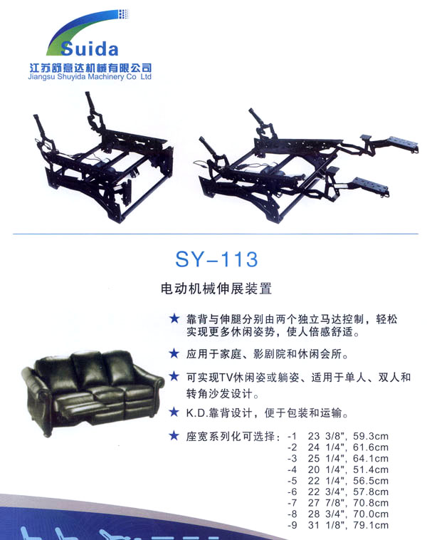 江蘇舒意達機械有限公司是一家集研發(fā)設計,生產(chǎn)制造及銷售的專業(yè)家具五金企業(yè)。公司成立于2006年,座落于風景秀麗的江南常州,交通運輸?shù)锰飒毢,為海?nèi)外客商的來往交流,洽談和供貨提供了諸多便利,公司占地面積28000平方米,生產(chǎn)廠房面積18000平方米,獨立的辦公樓,擁有良好的工作環(huán)境。 我們的經(jīng)營思理念:堅持以人為本,科技為先,用先進的設備,好的工藝流程制造一流的產(chǎn)品。 我們的口號:保證以優(yōu)秀的品質服務于客人,我們的目標:研發(fā)更多舒適的產(chǎn)品,帶來生活的享受。 公司誠邀海內(nèi)外客商前來指導洽談,攜手共進,共造雙贏。