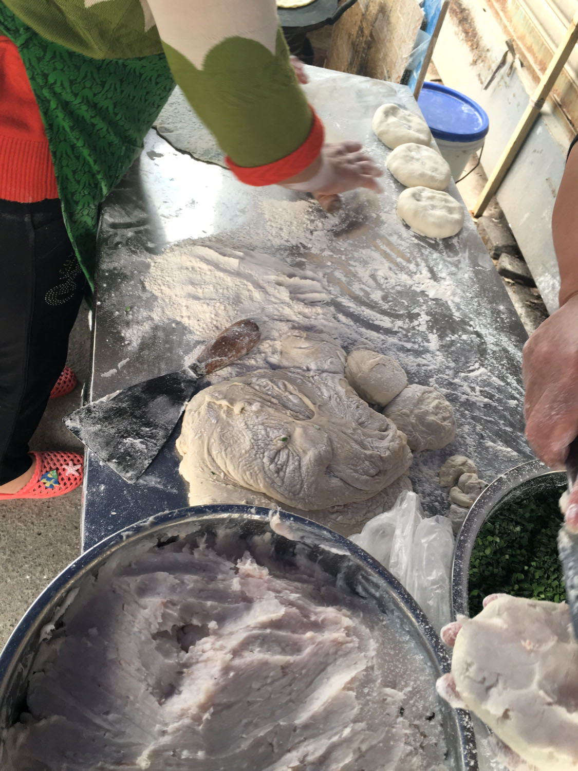 魁元面館,橫山橋江南路,沿街的店鋪。老板娘徐文霞,從公婆手里接過這個(gè)店面已有20多年。最具特色的菜品是肉圓跟大排。每天凌晨3點(diǎn)就要起來做準(zhǔn)備,菜都是現(xiàn)燒現(xiàn)賣。 特色小菜: 肉圓:有人特意遠(yuǎn)道而來打包走 大排面:每天能賣出100來塊大排 大腸 雞蛋:每天煎的雞蛋就差不多300來個(gè) 小餛飩、大餛飩 限時(shí)供應(yīng): 咸鴨蛋、肉粽、蛋黃粽:每天都要包,放爐子燒,在端午前后供應(yīng),很好吃。每天都有人打包幾個(gè)咸鴨蛋或者粽子拿回家,送人 油酥餅(圖3-4)、糍團(tuán)餅(圖5-6)、韭菜餅(圖7-8) 油酥餅每天晚上做,涼了更好吃,更酥更脆,里面都是很香的黑芝麻;糍團(tuán)餅,每天中午擺攤熱了煎鍋開始煎,糯米做成,用菜籽油煎至金黃,餡兒是黑芝麻瓜子仁;韭菜餅是最受歡迎的,每天都有好多人排隊(duì)來買。供應(yīng)時(shí)間:每年的4月份到11月份 下午1點(diǎn)到5點(diǎn)半。