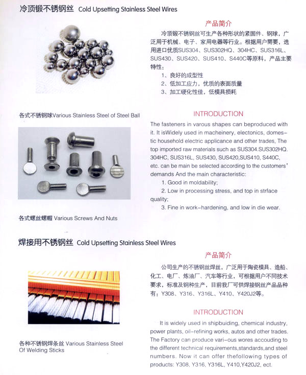 公司專業(yè)生產(chǎn)各種不銹鋼線材,年生產(chǎn)能力25000噸,產(chǎn)品已廣泛用于醫(yī)療、交通化工、彈簧、陶瓷模具、鋼球、五金件、標(biāo)準(zhǔn)件、精密軸制造等各領(lǐng)域。