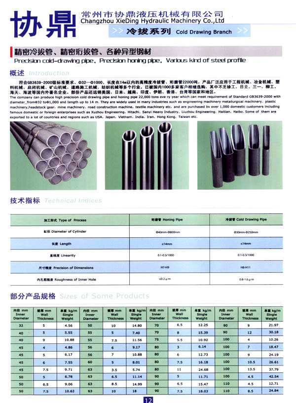 主要生產(chǎn)經(jīng)營:精密冷拔鋼管,珩磨鋼管,精密活塞桿,液壓油缸、氣缸設(shè)計制造.高精密液壓冷拔機(jī)、液壓矯直機(jī)、珩磨機(jī)、掏料機(jī)設(shè)計制造。公司設(shè)有專業(yè)的生產(chǎn)工廠,有多年從事液壓工程研究設(shè)計的專家及有豐富實(shí)踐經(jīng)驗(yàn)的工程技術(shù)人員,有專用的生產(chǎn)設(shè)備,先進(jìn)的生產(chǎn)工藝,以及完善的質(zhì)量保證體系,以確保產(chǎn)品的質(zhì)量,用最佳的售后服務(wù)為客戶增值。