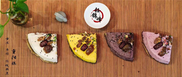 腳踏糕本名“年糕”,按常州周邊地區(qū)的風(fēng)俗習(xí)慣,在春季前夕,各家各戶都要蒸年糕,吃年糕。“糕”諧音“高”,過年吃年糕被賜予“年年高”,一年高一年,鋒吉祥之意,表達這人們對未來美好生活的憧憬和良好的祝愿。今天小編要帶大家的就是一家至今保持著傳統(tǒng)手工制作的鈺鋒糕點坊。 鈺鋒糕點坊位于常州鄭陸鎮(zhèn)三皇廟范家莊,一個比較偏僻的村莊,雖然這家作坊不大,但香糯絲滑,軟糯適中,韌勁十足的腳踏糕吸引了無數(shù)的食客。制作一條腳踏糕要從淘米,浸泡,碾粉,鋪粉,一層一層的鋪下去,需要無數(shù)道制作工序,這些都是店主孫煥公公老周,憑著幾十年的經(jīng)驗,加上店主孫煥從不馬虎的決心! 這“腳踏”也并非赤腳上陣,而是把蒸好的糕倒入早以準備好的框子里,用布包裹好,上面再用薄膜包好,再蓋上布,再換上專門腳踏的布鞋,踩的時候要勻稱,左右腳要配合好,不然糕會高高低低,不平整,最后再拿蠟燭線拆成一條小長條,再拿帶包裝好,如此又香又糯的腳踏糕就大功告成了。 店主孫煥為了讓更多的人認識和了解常州腳踏糕的傳統(tǒng)文化和美食,她在傳統(tǒng)工藝中增加了適合現(xiàn)代文化的多種口味,她在糕里加入南瓜,紫薯,老紅糖,大麥汁,血糯米,核桃,葡萄干,紅棗等食材,做出五顏六色,純天然的口味,深受食客們的喜愛,不管是送人還是自己吃都非常新穎。 (重陽糕)重陽糕的由來,九九重陽,九是陽數(shù),也是陽數(shù)中最大的數(shù),九月初九,兩九相重,為之重陽,古人有重陽登高的習(xí)俗。高于糕同意,寓意人活九十九,生活步步高,秋景勝春光,夕陽無限好。夕陽紅成了老人對自己美好的祝愿和希望,所以從某種意義上來講它“祝壽糕”“長壽糕”重陽糕在常州地區(qū)是家喻戶曉的,下面小編帶你去一家至今保持傳統(tǒng)手工制作的鈺鋒糕點坊看一下吧。鈺鋒糕點坊位于常州市天寧區(qū)鄭陸鎮(zhèn)三皇廟范家莊,偏僻的小村莊,雖然有點偏僻,但是每到重陽節(jié)到來,每天還是有很多食客來訂購和購買店主孫煥做的多種口味的重陽糕。要想做出松軟香糯的重陽糕,原材料和糯米和梗米的配比也很重要,調(diào)整好比例開始淘米,浸泡,釓粉,放入糖攪拌,篩粉,糕底部放上荷葉,中間的餡心都是孫煥自己熬制,口感,香糯松軟,店主孫煥為了吸引更多現(xiàn)代年輕人,她在粉里加入南瓜,紫薯,紅糖,血糯等,色彩搭配很出跳,吸引來了很多食客,孫煥2019年開始自愿捐贈重陽糕給敬老院,她說這樣的公益活動自己很喜歡,雖然金額不大,缺表達了她的一份心意,并稱這樣的公益活動她每年都會做。