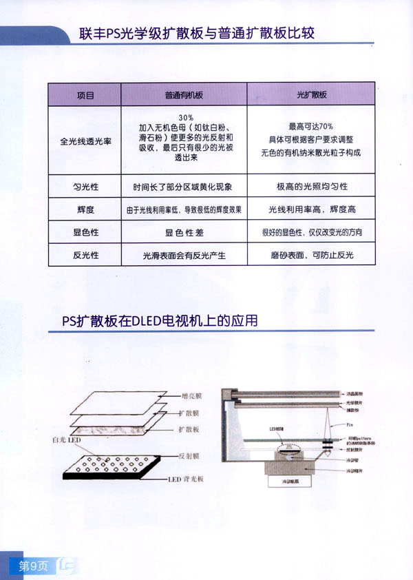 常州市聯(lián)豐(鏡面輥)集團(tuán)成立于2000年,是國(guó)內(nèi)從事板片材行業(yè)輥筒制造的專業(yè)企業(yè)。聯(lián)豐集團(tuán)全資子公司常州市聯(lián)豐光電科技有限公司成立于2013年6月。聯(lián)豐光電專業(yè)從事光學(xué)級(jí)擴(kuò)散板的研發(fā),生產(chǎn)和銷售。擁有各類高級(jí)技術(shù)研發(fā)人員10人,生產(chǎn)、管理及銷售人員60人。公司廠房占地面積2萬(wàn)平方米,工廠擁有十萬(wàn)級(jí)凈化車間,能有效滿足光學(xué)領(lǐng)域擴(kuò)散板生產(chǎn)的環(huán)境要求。公司已經(jīng)申報(bào)江蘇省高新技術(shù)企業(yè)。 公司現(xiàn)擁有全新進(jìn)口PS專用擴(kuò)散板材生產(chǎn)線兩條,月生產(chǎn)能力650噸PS擴(kuò)散板。日本進(jìn)口協(xié)榮裁切一體機(jī)兩臺(tái),月加工能力50萬(wàn)片(32寸擴(kuò)散板)。 聯(lián)豐生產(chǎn)的VFP系列PS擴(kuò)散板能廣泛應(yīng)用于直下式LED,CCFL液晶電視背光模組。產(chǎn)品在很多國(guó)內(nèi)一線TV的背光模組上使用。產(chǎn)品具有高輝度,高擴(kuò)散性,特別適用于超薄背光模組的擴(kuò)散部件,能有效降低成本,節(jié)約能源。 由于LED照明行業(yè)的興起,公司特別針對(duì)于LED面板燈和筒燈開(kāi)發(fā)的LFP系列擴(kuò)散板,在滿足透光率條件下,能最大限度提高光通量,從而增加燈具的光效,受到廣大客戶的好評(píng)。