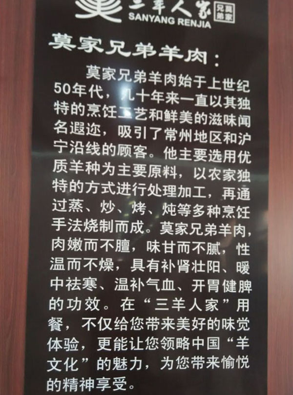 新北區(qū)羅溪佰朝羊肉館(三羊人家農(nóng)莊)經(jīng)營羊肉燒制工作40多年,主要供應(yīng)羊肉、羊湯、全羊宴,價(jià)格實(shí)惠公道,符合大眾消費(fèi),經(jīng)營面積260平方米,大小包廂20桌。地址:新北區(qū)羅溪鎮(zhèn)莫家塘東莫村29號(hào)聯(lián)系人:莫建峰電話:0519-83400579手機(jī):13776881579