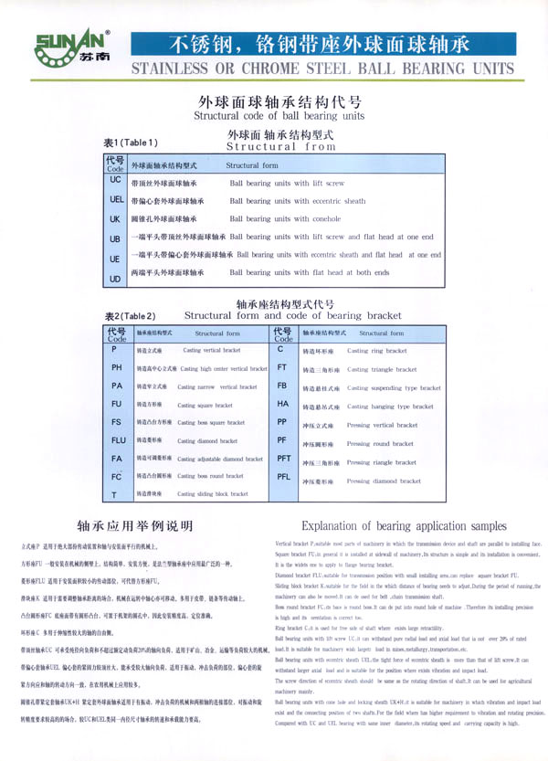 常州市武進(jìn)蘇南軸承有限公司是生產(chǎn)鋼球及帶座外球面軸承的專業(yè)工廠,主要生產(chǎn)蘇南牌“SN”不銹鋼球、鉻鋼鋼球,以及不銹鋼、鉻鋼UC、UCX、UK、HC、SB、SA、SER、UOOO、KOOO及其它非標(biāo)系列各類帶座外球面軸承、偏心套、緊定套等產(chǎn)品。本廠生產(chǎn)規(guī)格有軸承鋼球0.5-150m/m,碳鋼球0.5-150m/m,不銹鋼球0.8-50m/m,同時(shí)定做各種特殊規(guī)格的不銹鋼球、銅球、陶瓷球等。為廣大用戶提供品質(zhì)優(yōu)良,規(guī)格齊全,價(jià)格合理的各種鋼球。