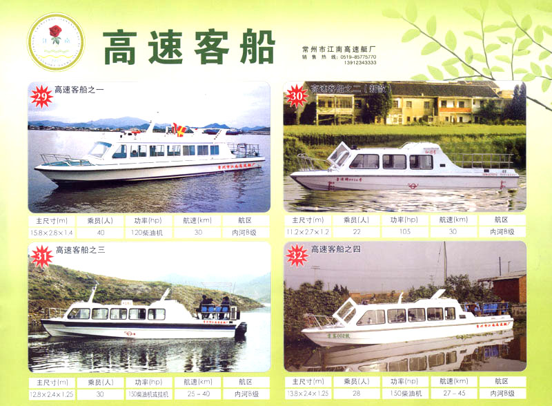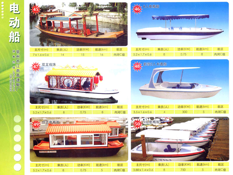 隨著人民生活的提高和水上旅游業(yè)的不斷發(fā)展,原有的游艇已遠不能滿足人民群眾不斷提高的需求。為適應水上旅游業(yè)市場的變 化,我廠開發(fā)研制了符合中國國情、具有民族特色的仿古畫舫游艇及國際最新流行款式一城市旅游休閑觀光艇。特別近兩年又開發(fā)了一批精品畫舫船投放市場之后深受景區(qū)的歡迎。今年我廠又開發(fā)了適用少數民族的“風雨橋”、“寨門”畫舫艇。在湖南、廣西、云南、貴州深受愛戴。此艇別具風格,民族風情特別濃厚。侗鄉(xiāng)一號計劃在2006年5月1日投放在貴州黎平侗鄉(xiāng)風景區(qū)八舟河景區(qū)使有(風序號)。我廠歡迎用戶來圖加工,來廠考察訂貨,畫舫艇款式多多,終有一款適合你。歡迎來電來函垂詢。索樣即寄。誠心銷售、人情化服務、企業(yè)文化、精品畫舫。