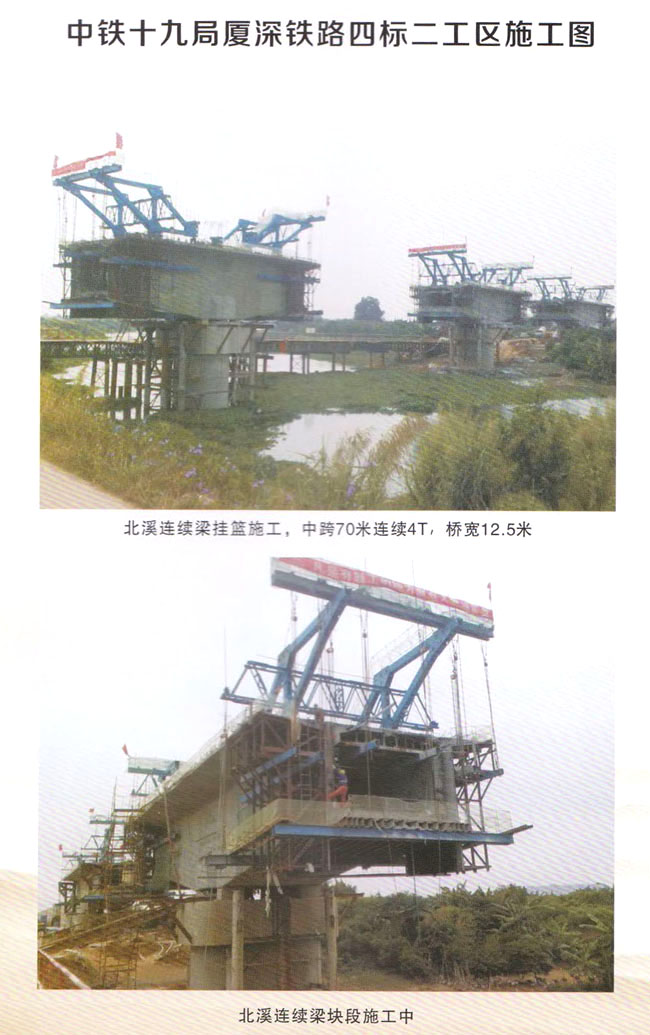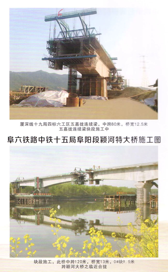 為了突出專業(yè)特色,保持競爭優(yōu)勢,公司形成了以承建旌工難度大、技7It含量高的大型及特大型高鐵橋梁建設(shè)為主的經(jīng)營格局,特別是在懸澆(掛籃施工)方面積累了相當(dāng)豐富的施工與管理經(jīng)驗,先后承建了十幾座大跨徑的鐵路橋梁。