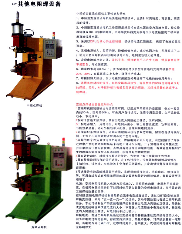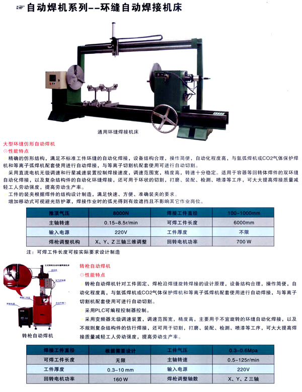 焊割主要產(chǎn)品有:點(diǎn)焊機(jī)系列、縫焊機(jī)系列、環(huán)縫焊接機(jī)床、凸焊機(jī)、排焊機(jī)、儲(chǔ)能焊機(jī)、對(duì)焊機(jī)、龍門焊機(jī)、太陽能焊接設(shè)備和機(jī)器人焊接系統(tǒng)及外圍設(shè)備等;并為用戶設(shè)計(jì)制造專用焊接設(shè)備。