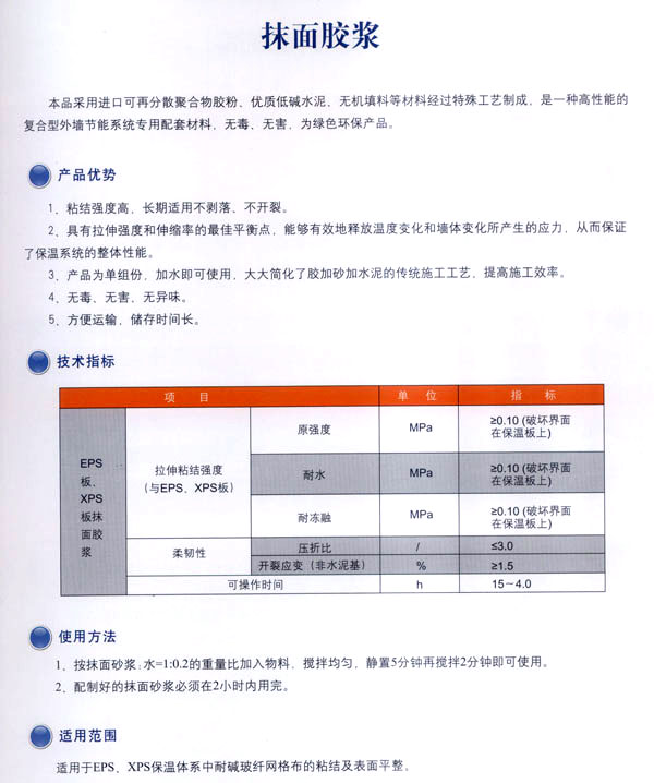 常州市?敌滦徒ú挠邢薰臼且匝兄崎_發(fā)、生產(chǎn)、銷售、施工、技術(shù)服務(wù)為一體的化學(xué)建筑材料的專業(yè)企業(yè),通過與歐洲著 名建筑材料公司和國(guó)內(nèi)權(quán)威科研機(jī)構(gòu)合作,并聘請(qǐng)國(guó)家級(jí)專家為技術(shù)顧問,開發(fā)出適合我國(guó)市場(chǎng)的?礒PS、XPS及聚苯顆粒外墻外保溫節(jié)能系統(tǒng)。 公司的生產(chǎn)線全部采用國(guó)內(nèi)先進(jìn)的電腦控制自動(dòng)化設(shè)備,配備了專業(yè)的實(shí)驗(yàn)中心,并且采用進(jìn)口的可再分散乳膠粉為基料,確保?低鈮ν獗毓(jié)能系統(tǒng)具有性能優(yōu)異、安全可靠,綠色環(huán)保、適用性強(qiáng)的高品質(zhì)特點(diǎn)。 公司開發(fā)的\'?低鈮ν獗叵到y(tǒng)\'被列為江蘇省科技成果推廣項(xiàng)目。整個(gè)生產(chǎn)流程依照質(zhì)量體系的要求,實(shí)行嚴(yán)格的監(jiān)控和檢測(cè),為生產(chǎn)優(yōu)質(zhì)產(chǎn)品提供保證。高品質(zhì)的福康外墻外保溫系統(tǒng),提供從熱工設(shè)計(jì)、產(chǎn)品開發(fā)、生產(chǎn)銷售及工程施工全程服務(wù)的一體化解決方案。 公司本著“綠色環(huán)保、節(jié)約能源、造福人類”的理念。用我們一流的產(chǎn)品和優(yōu)秀的服務(wù),打造出一個(gè)個(gè)節(jié)能康居示范工程,為人類營(yíng)造出舒適健康的居住環(huán)境。我們?cè)笧橹袊?guó)節(jié)能事業(yè)的發(fā)展積極努力,更上一層樓。 公司組建高效的生產(chǎn)經(jīng)營(yíng)管理模式,設(shè)立專業(yè)技術(shù)服務(wù)機(jī)構(gòu)。配備售后的優(yōu)質(zhì)服務(wù)。實(shí)行原材料、運(yùn)輸、安裝一條龍服務(wù)。經(jīng)本公司施工之后,貴公司可以直接批涂料、裝門窗、貼瓷磚,保證絕無任何質(zhì)量問題。