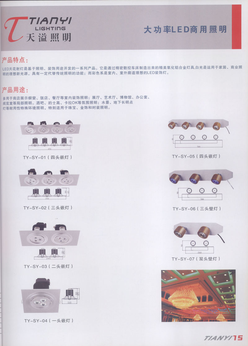 天溢照明是中國領(lǐng)先的專業(yè)從事LED廣告照明裝飾燈具設(shè)計(jì)、系統(tǒng)開發(fā)、燈具制造、工程服務(wù)一體的專業(yè)型公司,本公司產(chǎn)品已廣泛應(yīng)用于全國大多數(shù)城市夜景亮化景觀照明、酒店休閑娛樂夜場(chǎng)夢(mèng)幻燈光、戶內(nèi)外廣告宣傳、建筑及室內(nèi)照明以及家居裝飾等場(chǎng)合。