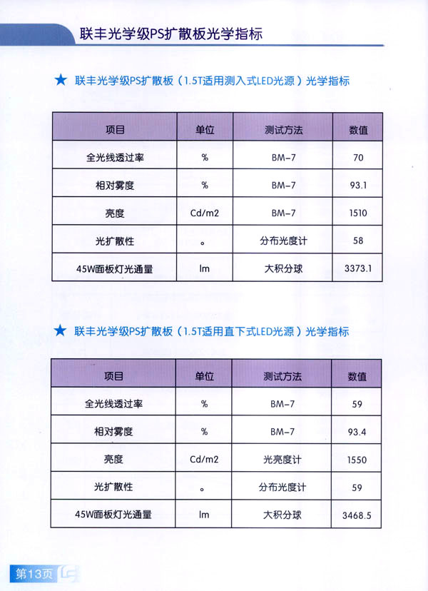 常州市聯(lián)豐(鏡面輥)集團(tuán)成立于2000年,是國內(nèi)從事板片材行業(yè)輥筒制造的專業(yè)企業(yè)。聯(lián)豐集團(tuán)全資子公司常州市聯(lián)豐光電科技有限公司成立于2013年6月。聯(lián)豐光電專業(yè)從事光學(xué)級擴散板的研發(fā),生產(chǎn)和銷售。擁有各類高級技術(shù)研發(fā)人員10人,生產(chǎn)、管理及銷售人員60人。公司廠房占地面積2萬平方米,工廠擁有十萬級凈化車間,能有效滿足光學(xué)領(lǐng)域擴散板生產(chǎn)的環(huán)境要求。公司已經(jīng)申報江蘇省高新技術(shù)企業(yè)。 公司現(xiàn)擁有全新進(jìn)口PS專用擴散板材生產(chǎn)線兩條,月生產(chǎn)能力650噸PS擴散板。日本進(jìn)口協(xié)榮裁切一體機兩臺,月加工能力50萬片(32寸擴散板)。 聯(lián)豐生產(chǎn)的VFP系列PS擴散板能廣泛應(yīng)用于直下式LED,CCFL液晶電視背光模組。產(chǎn)品在很多國內(nèi)一線TV的背光模組上使用。產(chǎn)品具有高輝度,高擴散性,特別適用于超薄背光模組的擴散部件,能有效降低成本,節(jié)約能源。 由于LED照明行業(yè)的興起,公司特別針對于LED面板燈和筒燈開發(fā)的LFP系列擴散板,在滿足透光率條件下,能最大限度提高光通量,從而增加燈具的光效,受到廣大客戶的好評。