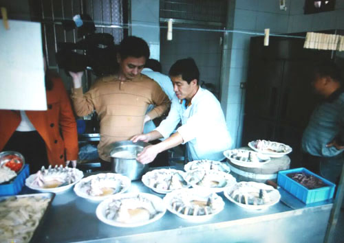 張萬(wàn)成羊莊一家綜合性的公司,下設(shè)酒店,羊產(chǎn)品加工廠(chǎng),屠宰廠(chǎng),山羊養(yǎng)殖場(chǎng)。 酒店位于常州西夏墅浦河村,酒店羊宴規(guī)模占地30畝,酒店主要經(jīng)營(yíng)特色全羊宴。 一個(gè)祖?zhèn)鞯臍⒀虼髴?hù),傳到張萬(wàn)成,已是第六代了。張家的羊肉,素來(lái)以肉質(zhì)鮮美著稱(chēng),張萬(wàn)成羊莊的主人張建龍是第六代傳人,張家的羊肉素來(lái)以肉質(zhì)鮮美著稱(chēng),從常州新北區(qū)沿黃河西路往機(jī)場(chǎng)方向直行至羅溪右轉(zhuǎn),穿過(guò)滬寧高速高架橋后不遠(yuǎn)處左拐沿翠屏湖路直走便能看到張萬(wàn)成羊莊,酒店上下共有三層,2000多平方米經(jīng)營(yíng)面積,能同時(shí)接待近30桌客人的規(guī)模。有自己的羊圈和屠宰場(chǎng),每天殺20多只,菜式近100道。光是原料,就從原來(lái)羊身上的幾個(gè)主要部位,增加到除了羊牙齒以外的一只整羊全部可以入菜。烹制方式,更是在本土單一的燒、炒、煮基礎(chǔ)上,借鑒了東北、廣東、四川等地的烹羊特色,增加了蒸、涮、烤、煎、炸等多種方式。 注重原汁原味的冷菜 白切羊肉:精選羊頸部的活肉精制而成,肥瘦適中,絲毫沒(méi)有一般羊肉的膻味,沾少許張萬(wàn)成羊莊秘制的醬料,口感非常好。 美味羊舌:張家的羊舌感覺(jué)是用特殊的醬料腌制過(guò)的,咸中略有甜味,口感鮮嫩卻肥而不膩,味道很香。 除了白切羊肉和羊舌以外還有許多冷菜品種,如羊肚、羊心、羊耳朵等。。 火候控制精準(zhǔn)的炒菜 炒羊肝:地道的農(nóng)家風(fēng)味,與大蒜葉同炒,蒜香濃郁,羊肝鮮嫩,這羊肝可是火候菜,羊肝鮮嫩與否不但取決于廚師對(duì)火候的掌握,還在于上桌放置時(shí)間的長(zhǎng)短,所以羊肝上桌后要盡快食用,看羊肝是否鮮嫩,只需用筷子挑起并輕輕抖動(dòng),有彈性者為佳。 美味羊?qū)殻阂跃曼S、鮑味菇爆炒的羊?qū),說(shuō)是滋補(bǔ)壯陽(yáng)的一道金貴菜,配料講究的燒菜系列 宮廷燴羊肚:較為金貴的菜品,配菜貴于主料,是以名貴的素鮑和新鮮的筍絲與羊肚同煮,口感濃郁,營(yíng)養(yǎng)豐富。 海參白燒羊肉:將取自7個(gè)月大羔羊身上的帶皮腿肉與海參一同煨煮,菜肴美容滋補(bǔ),兩種鮮味互相補(bǔ)益達(dá)到完美交融狀態(tài),口感甚佳。 魚(yú)羊鮮:新鮮的青魚(yú)配上羊肉,既有本地羊肉的肥嫩,又有魚(yú)肉的鮮香,鮮!鮮!古代人造字就是有道理!”店里可以根據(jù)客人的需要配以魚(yú)回魚(yú)、鯰魚(yú)、鱖魚(yú)等。 特色的羊宴點(diǎn)心 羊肉餛飩:羊莊老板自創(chuàng)的羊宴點(diǎn)心,看似普通的油燜跑蛋卻另有乾坤,將蛋掀開(kāi)便能看見(jiàn)藏于其中的羊肉菜餡餛飩,菜和肉都是自家新鮮的原料,很好吃。 手工搟面:不知道是因?yàn)槊媸钦嬲檬止{制還是因?yàn)榧尤肓缩r味十足的羊湯,總之味道非常好,面勁道,湯也鮮美! 張萬(wàn)成羊莊的羊湯也是遠(yuǎn)近聞名,因?yàn)槭亲鎮(zhèn)鞯氖炙,做出?lái)的羊湯不腥不膻,香醇不膩,味道十分鮮美,加入粉絲或者面條更是難得的美味。