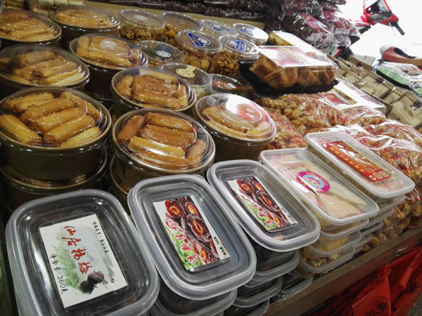 湖塘花東街上的“石頭炒貨店”是20多年的老字號(hào)了。上個(gè)世紀(jì)90年代,二十郎當(dāng)歲的“石頭”一一石愛軍從徐州來到武進(jìn),就在這條街上擺了個(gè)炒貨攤!皫灼椒矫椎男〉?cái),邊上架個(gè)大鐵鍋,炒出的瓜子、花生、蠶豆,鋪在竹篾上篩過、冷卻后就可以賣了。”石愛軍回憶,街坊鄰里冒著冬日的嚴(yán)寒,擠在地?cái)偳皣L著剛出鍋的瓜子的場(chǎng)景,還歷歷在目。20多年過去了,鄰居們都成了最熟悉的親人,從年輕姑娘到抱著孫子的老人,大家還是最愛吃石頭炒的瓜子。而炒貨店的店面也擴(kuò)大了,并且在湖塘另開了多家分店。 生意最好的還是花東街上的老店。不大的店面,被一袋袋瓜子、花生、蠶豆、核桃堆得滿滿的,空氣里也滿滿都是堅(jiān)果的香氣。超大瓜子唇齒留香,去皮瓜子鮮香入昧,南瓜子皮薄肉厚,還有開心果、手剝松子、小油果、核桃、碧根果、小黃豆,以及炒米糕、蛋卷、麻松條、紫薯干、地瓜干、山芋片、鍋巴、芝麻糖、山楂、麻花、葡萄干….這么多美昧都是老板親手制作。愛吃點(diǎn)什么,就用一 長柄勺鏟點(diǎn)兒什么,最質(zhì)樸簡單的包裝袋里,裝著的是屬于這條老街居民記憶里的味道,穿過幾十年的時(shí)光,仍然鮮活生動(dòng)地銘刻在每一個(gè)人的里。 “少東家”石榮沖就是在這個(gè)老店、這條老街長大的。他說目前自己炒瓜子的技藝還沒到火候,還在跟著父親學(xué)習(xí)的階段。”挑選原料、炒制工序,每一步都有學(xué)問在里頭。”拿店內(nèi)的銷售冠軍“內(nèi)蒙大瓜子”來說,這種來自內(nèi)蒙、經(jīng)過充足日照的葵花子每顆長度近2厘米,個(gè)頭特別大,也十分飽滿。拈一顆大瓜子,就連嗑起來的聲音也分外清脆。外皮很容易與內(nèi)仁剝離,碩大的瓜子仁口感十分香脆,與別家作料用得很足、吃起來特別鮮咸的瓜子不同,這種大瓜子更注重烘托原昧,淡淡的咸昧在舌尖掠過,剩余的都是屬于瓜子的天然香甜。