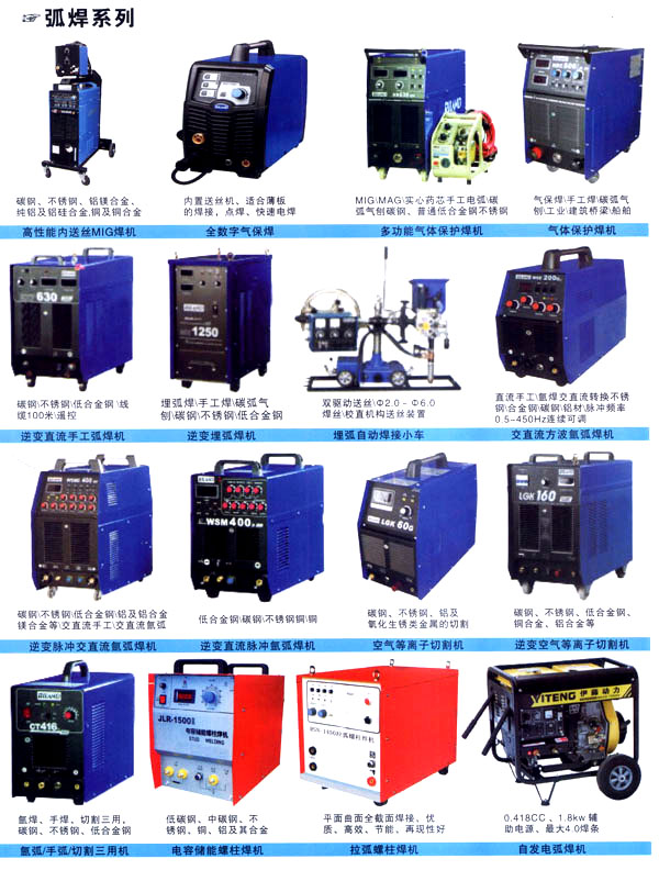 焊割主要產(chǎn)品有:點(diǎn)焊機(jī)系列、縫焊機(jī)系列、環(huán)縫焊接機(jī)床、凸焊機(jī)、排焊機(jī)、儲能焊機(jī)、對焊機(jī)、龍門焊機(jī)、太陽能焊接設(shè)備和機(jī)器人焊接系統(tǒng)及外圍設(shè)備等;并為用戶設(shè)計制造專用焊接設(shè)備。