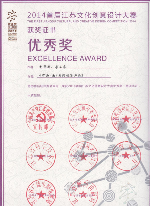 文化創(chuàng)意大獎賽“紫金獎” ,有余(魚)系列梳篦產(chǎn)品獲得了優(yōu)秀獎